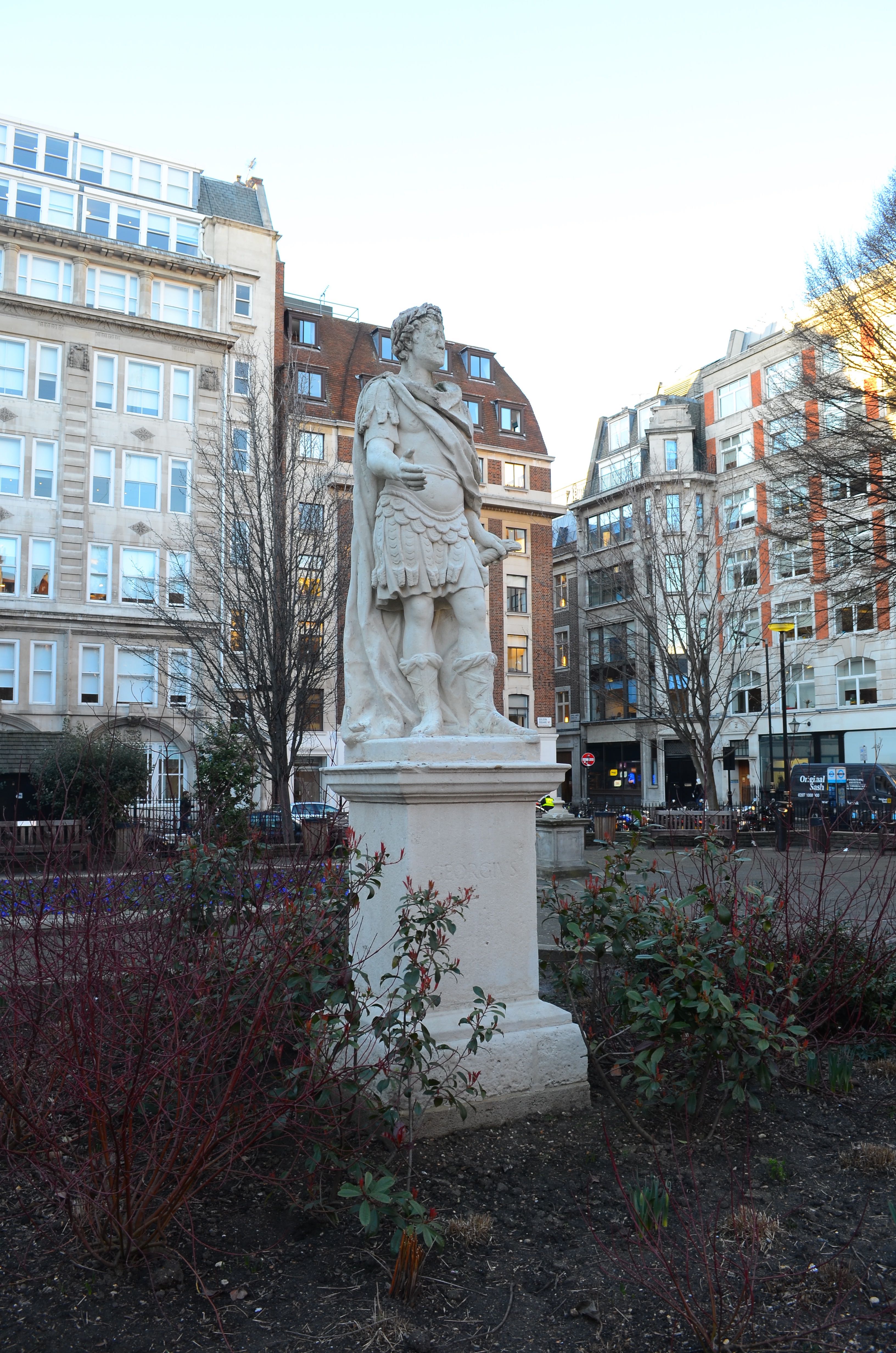 There is a statue in Golden Square of King George II (or King Charles II) bedecked in a Roman toga; opinions are divided, though most sources say it is George. The square’s famous residents include Barbara Villiers, later Palmer, one of Charles II’s mistresses; Angelica Kauffman, a Swiss artist who was one of only two female founder members of the Royal Academy; and Thomas Jefferson who, before he became president of the USA, stayed in Golden Square during his only visit to London.